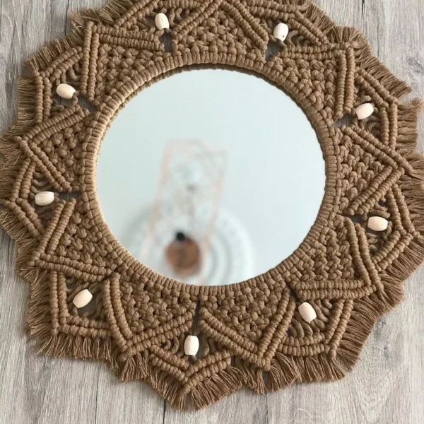 The Rakano Bohemian Macramé Mirror is a stunning handcrafted piece that adds a touch of rustic charm to any living room or home decor. Featuring a round design with intricate green tassels, this wall mirror brings a vibrant boho vibe to your space. Perfect for creating a stylish, cozy atmosphere in any room.
